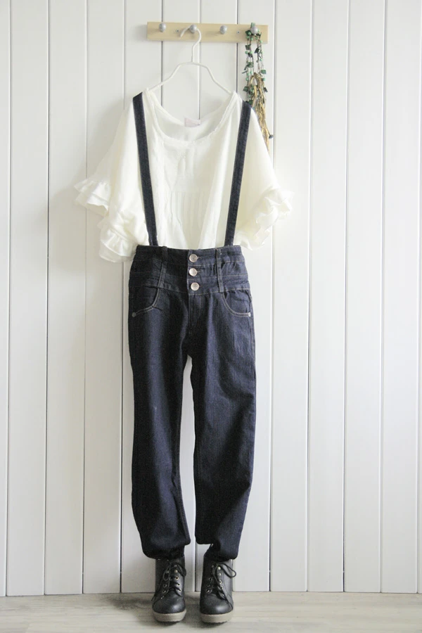 平面:S碼:胸圍:31cm;臀圍:39cm;大腳圍:22cm;褲腳:15cm;褲長:95cm;全長:105cm M碼:胸圍:32cm;臀圍:42cm;大腳圍:23cm;褲腳:16cm;褲長:94cm